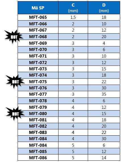 | Tên sản phẩm: Gioăng Bán Nguyệt MF-007, MF-006 | |